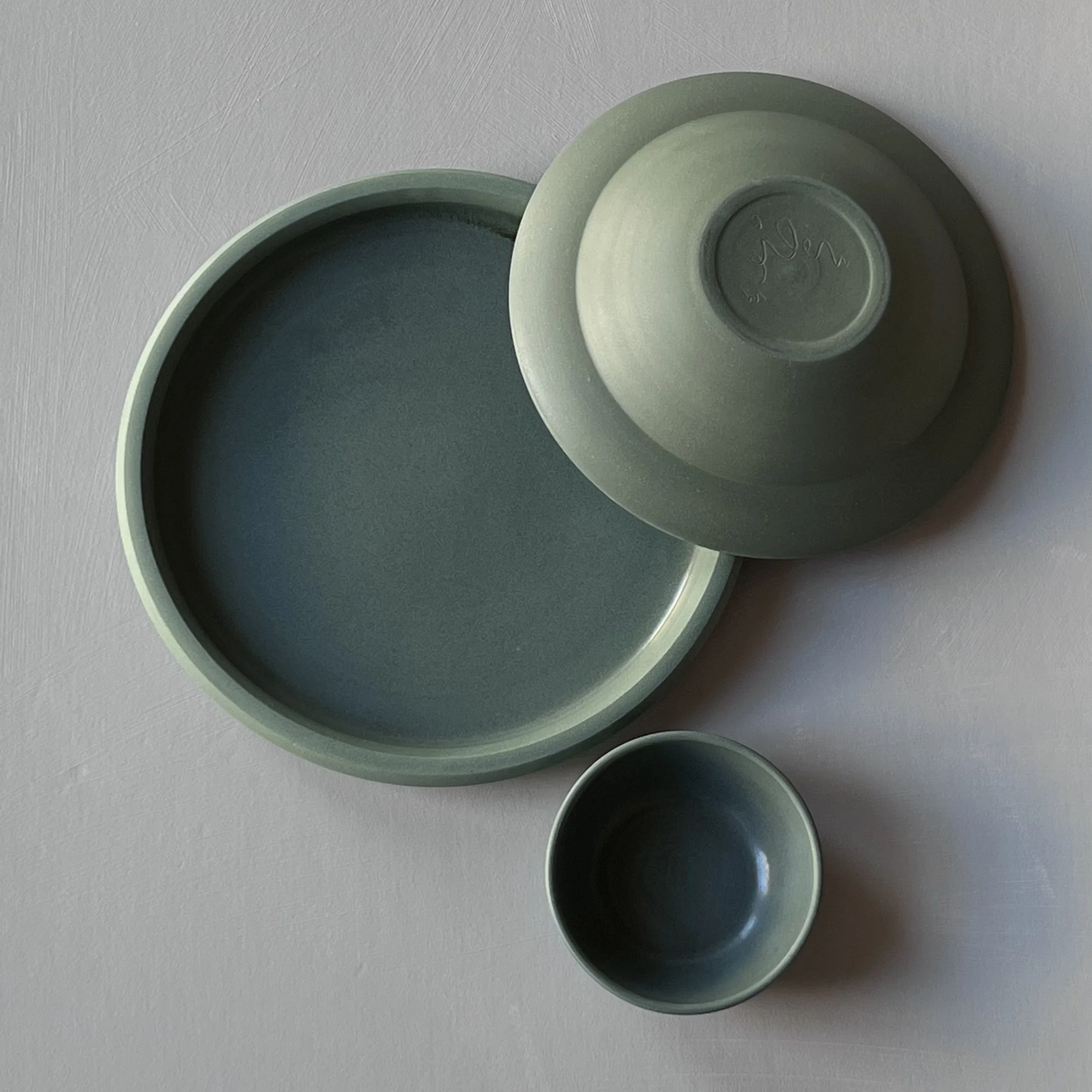 one of a kind set of 3 in shades of dark green