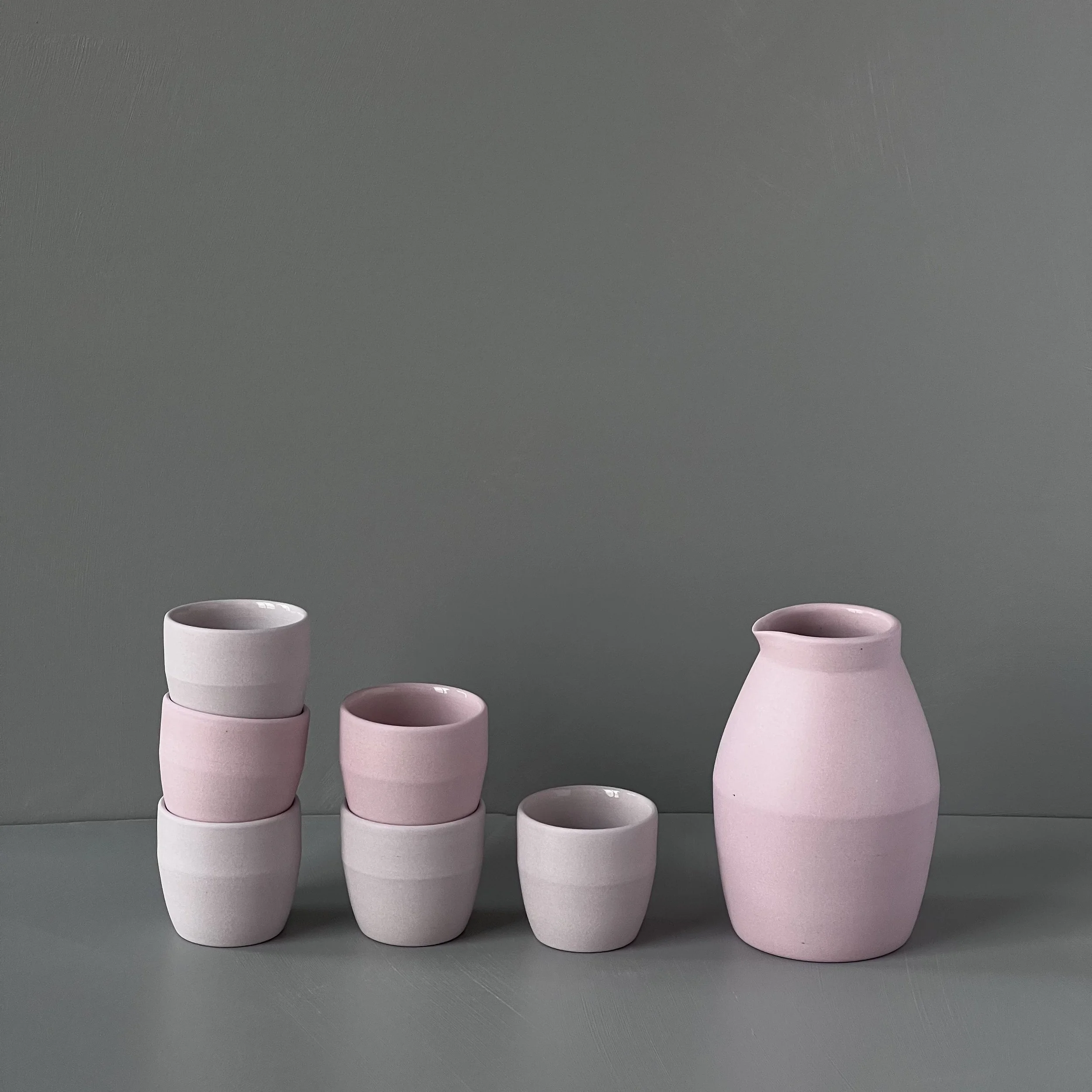 one of a kind sake set in pale lavender and pink