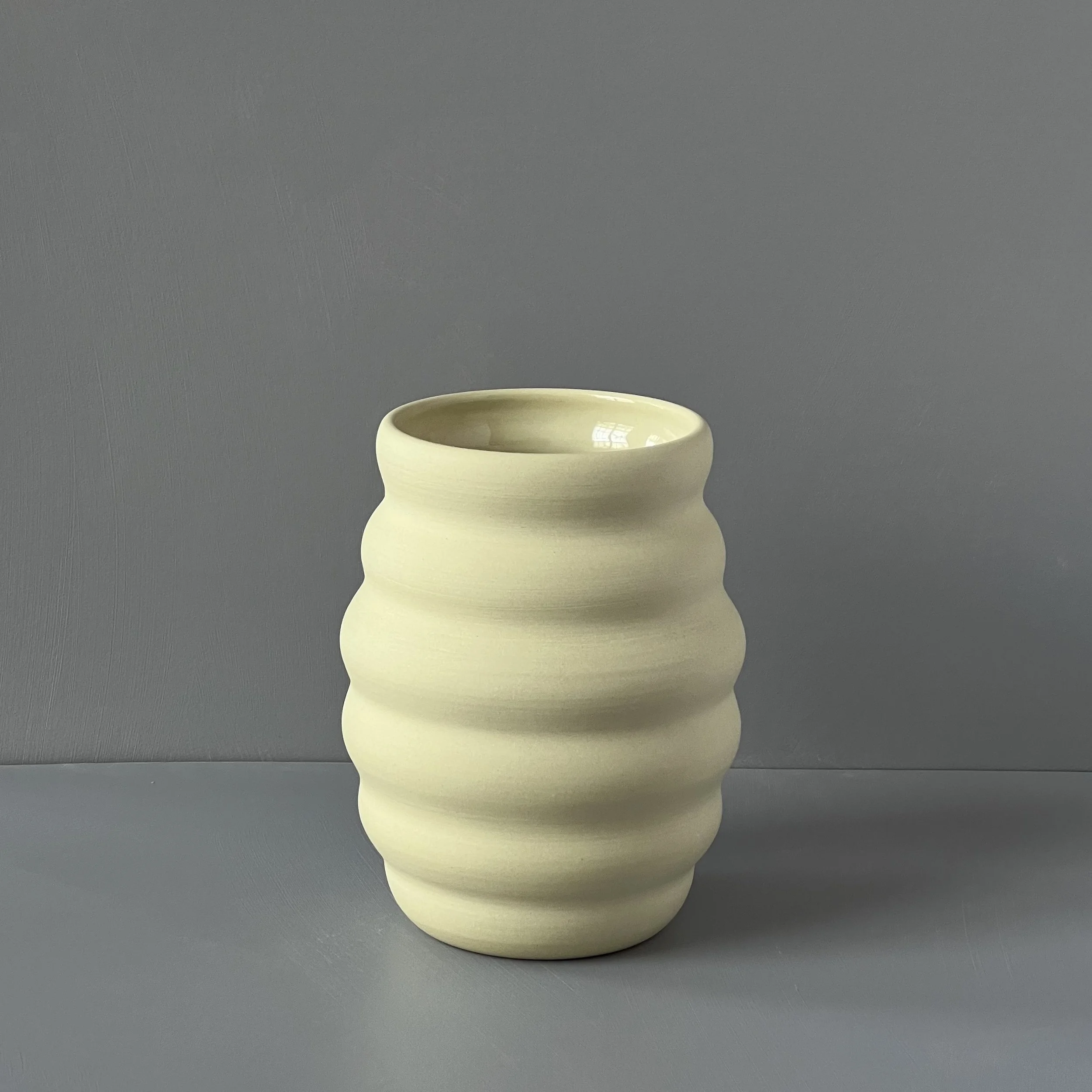 one of a kind, wheel thrown vase in pale yellow porcelain